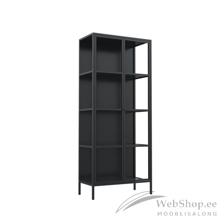 Metallist kapp lisab interjööri tööstuslikku hõngu. Klaasuksed lisavad ruumile modernse tunde, samal ajal kui pulbervärvitud metall täiendab tööstuslikku ilmet. Kapp on hea viis interjööri värskendamiseks ja hoiuruumi tekitamiseks. Materjal: metall, pulbervärvitud, mattmust. Mõõdud on 80x40xH160cm.