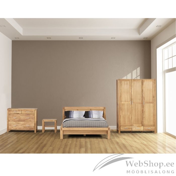 Voodi CHICAGO NEW 160x200cm, naturaalne. Voodi karkass ja peats on valmistatud tammespooniga vineerist. Voodijalad on valmistatud tamme täispuidust, mõõtudega 8x8cm. Viimistlus on õlitatud. Komplekt sisaldab peatsit ja voodipõhja resti. Madrats ei kuulu komplekti. Sobiva madratsi mõõdud on 160x200cm. Voodi üldmõõdud on 176x214,5xH91cm.