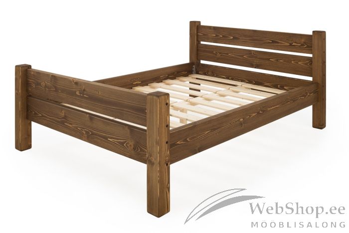Eestis naturaalsest kuusepuidu valmistatud tugeva konstruktsiooniga elegantne 200 cm laiune voodi on viimistletud peitsi ja lakiga.