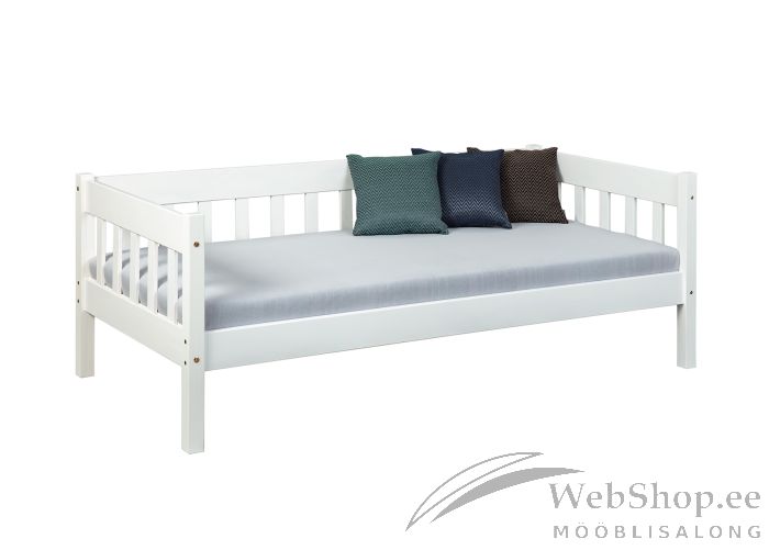 Lihtsas stiilis valgeks peitsitud männipuidust voodi. Põhi kuulub komplekti. Madrats ei kuulu komplekti. Vali sobiv madrats mõõdus 90x200cm.