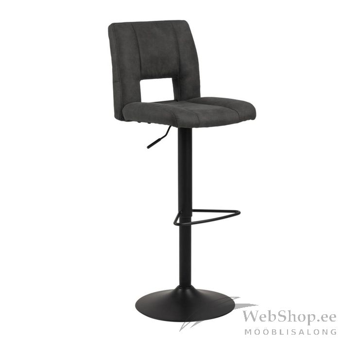 Ideaalne vestluseks või hommikuse lehe lugemiseks. Baaritool on moodsa köögi kohustuslik element. Baaritoolil on klassikaline siluett, polsterdatud iste, toetav seljatugi ja tugev alus. See sobib ideaalselt külalistele, kuna kõrgust saab hõlpsalt reguleerida. Istmel on dekoratiivsed vertikaalsed õmblused. Alus on jalatoega ja valmistatud mattmustast pulbervärvitud terasest. Baaritoolil on pneumaatiline istme kõrguse reguleerimine. Istme kõrgus on reguleeritav 62–83cm. Kaalupiirang on 110kg. Mõõdud on 41x52xH115cm.