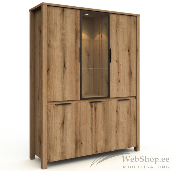 Kõik sarja mööbliesemed on valmistatud kvaliteetsest mööbliplaadist, millel on etna tamme imitatsioon– see lisab soojust, tekstuuri ja ajatut looduslähedust igasse ruumi. Vitriinkapp on mahukas, alumises osas kolm ust ning ülemises samuti kolm, millest kaks on klaasist. All iga ukse taga üks vaheriiul ning üleval iga ukse taga kaks vaheriiulit.