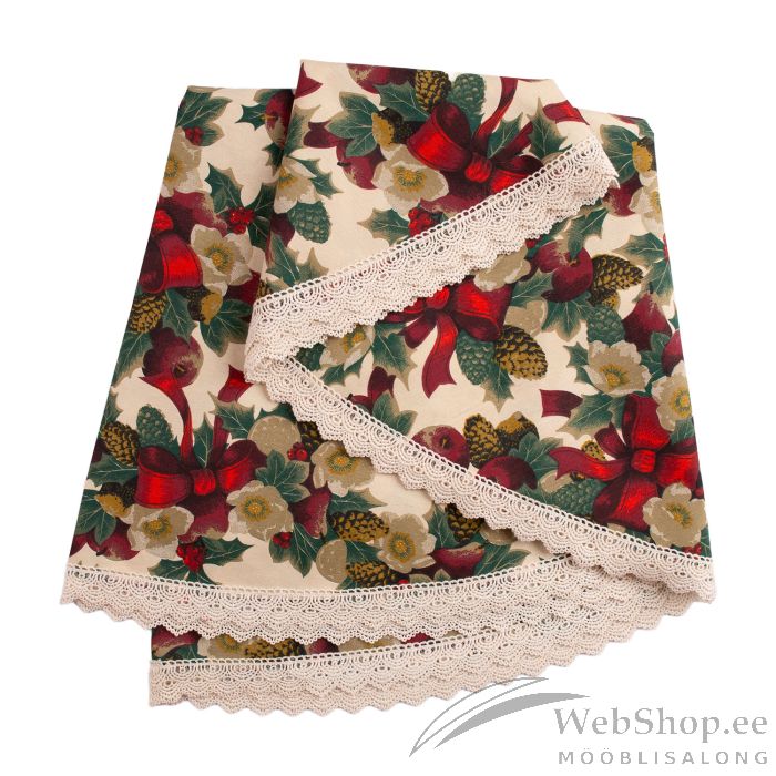 Laudlina WINTER FLOWERS pitsiga, D170cm, lindid, 50% polüester, 50% puuvill, kangas 475. HOOLDUS: võib pesta temperatuuril 30 kraadi pesumasinas.
