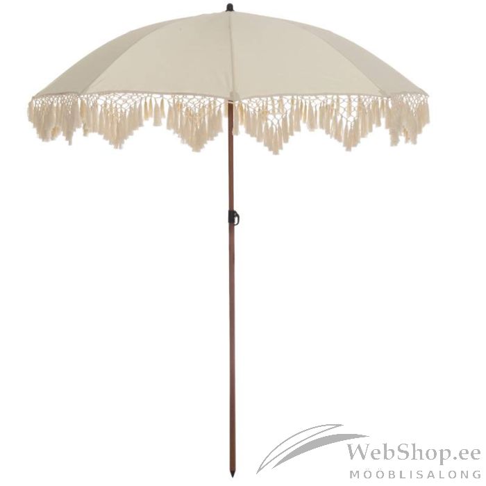 Stiilsel päikesevarjul on kaunid makrameest dekoratiivsed narmad ning metallosad on töödeldud nii, et need näeksid välja justkui oleks puidust. See annab päikesevarjule imelise loomuliku välimuse. UV kaitse +50.