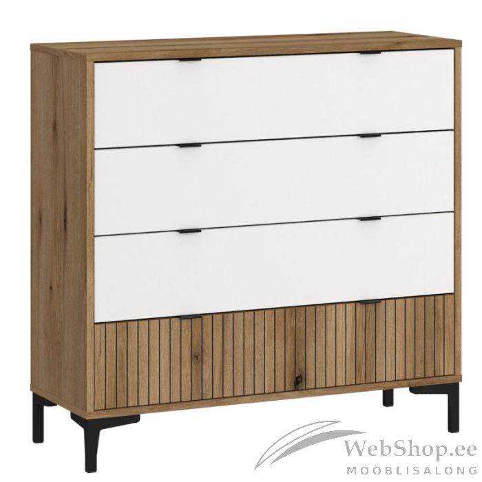 Kogu sarja mööbel on valmistatud lamineeritud puitlaastplaadist. Nelja mahuka sahtliga kummut on äärmiselt mitmekülgne mööbliese, mis sobib erinevatesse ruumidesse. Puidu imitatsioon on tehtud digitrüki tehnoloogiaga. Jalad plastikust.