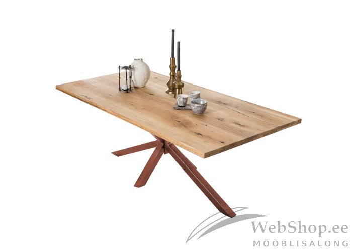 Naturaalsest tammepuidust valmistatud lauaplaat ja pilkupüüdev metallist lauajalg. Lauaplaadi paksus on 40 mm. Iga lauaplaat on unikaalne ning naturaalsest puidust tingituna võib esineda mõningast värvierinevust, oksakohti ning pisitäkkeid, mis on loomulik ega kujuta endast vigu, vaid rõhutavad puidu individuaalset iseloomu.