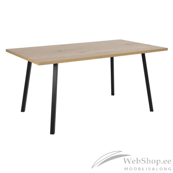 Moodne söögilaud mahutab mugavalt pere ja sõbrad. Mustad pulbervärviga kaetud metalljalad muudavad söögilaua silmapaistvaks – tekib stiilne kontrast metsiku tamme välimusega. Laual on lihtne siluett ja puhtad jooned. Lauaplaat: melamiin, metsik tamm, jalad: pulbervärvitud, mattmust. Mõõdud on 160x90xH75cm.