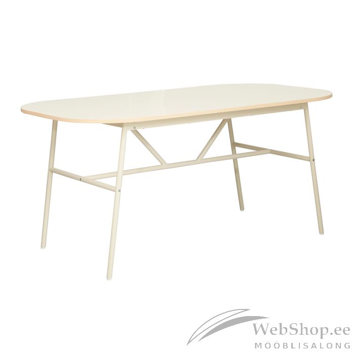 Söögilaud DESMOND 160 x 90 x H76 cm, beež. Lauaplaat: beež melamiinplaat, tamme värvi PVC äärega. Jalad ja raam on valmistatud metallist ja viimistletud beeži pulbervärviga.