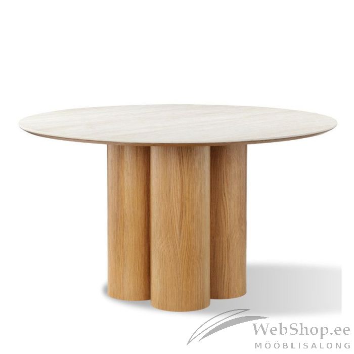 Söögilaud Oliin on ideaalne valik, et lisada stiili ja praktilisust igasse söögituppa. Ümara kujunduse ja puiduse viimistluse kombinatsioon loob elegantse ja sooja atmosfääri, olles samas piisavalt mitmekülgne, et sobida erinevatesse interjööridesse. Laua pilkupüüdev jalg toob esile modernse ja unikaalse disaini, muutes selle keskseks detailiks igas ruumis.