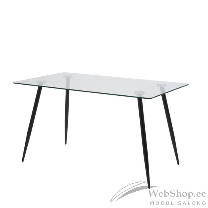 Söögilaud on nii visuaalselt atraktiivne kui ka vastupidav. Ajatu disainiga laud on valmistatud metallist ja klaasist. Materjalide valik tagab minimaalse hoolduse, lauda on lihtne puhastada. Laual on peened nurga all olevad jalad. Lauaplaat: 10mm klaas, jalad: musta värvi metall. Mõõdud 140x80xH75cm.