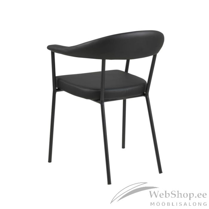 Välimuselt kerge söögitool toob kaasaegse elegantsi igasse söögituppa. Peen käetugedega iste on polsterdatud musta kunstnahast kangaga. Seda toetab must metallraam. Mugavust lisab seljatoe kerge kumerus. Kaalupiirang: 110kg. Mõõdud 52,5x56xH77,5cm.