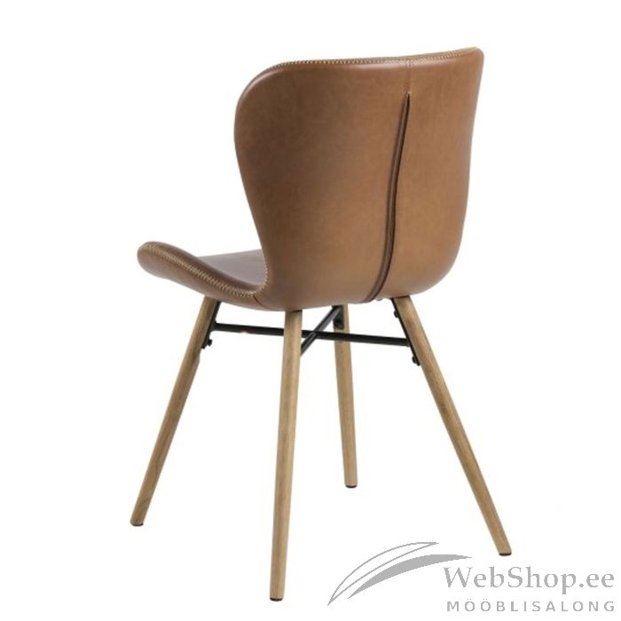 Tool BATILDA 47x56xH82,5cm, iste/seljatugi: kunstnahk, värvus: brändi, kreemikad õmblused, jalad: tamm, must metal. Istumiskõrgus: 46.5cm. Kaalupiirang: 100kg.