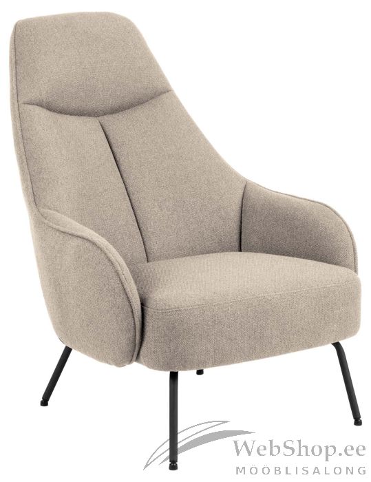 Selgete joonte ja ümara kujuga beež tugitool võlub oma skandinaavialiku disainiga. Peened õmblused kaunistavad kõrget seljatuge ja rõhutavad tooli elegantset iseloomu. Tool on kaetud kangaga, mille valmistamisel on kasutatud taaskasutatud plastpudeleid. Tooli sees on pocket-vedrustus, tänu millele on tool lõõgastumiseks väga mugav. Kangas: 100% polüester, Martindale > 25 000. Jalad: pulbervärvitud teras. Toote mõõdud on 73x92xH98cm.